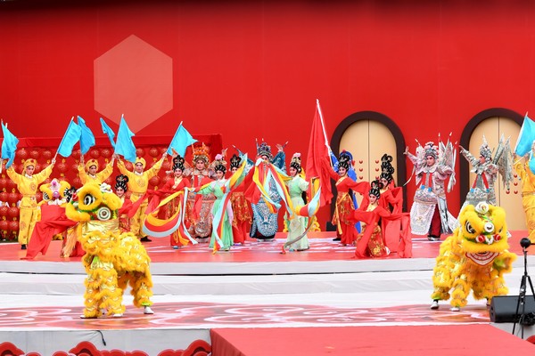 活动汇演,由广东粤剧院二团优秀青年演员参与演出的《醒狮贺春 五仙祈福》拉开序幕。在喜庆热闹的氛围中,二团演员们化作五仙,手持麦穗走入观众席中,将代表吉祥如意、岁岁平安的麦穗送给大家。