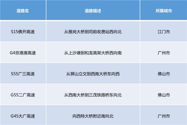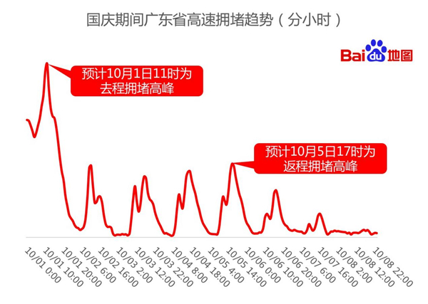 根据百度地图数据预测,国庆期间,预计我省去程高速拥堵高峰将出现在10月1日11-12时,返程高速拥堵高峰将出现在10月5日17-18时。预计佛开高速、京港澳高速、广三高速、二广高速、大广高速等路段易发生拥堵。请广大游客合理安排行程,错峰出行,避免拥堵。