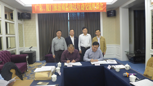 近日,省旅游局组织省、市部分旅游执法负责人赴江西、福建开展旅游执法专项学习调研及交流活动。在省旅游局李振德副巡视员的率领下,调研组一行分别与江西、福建省旅游质监执法机构就市场监管、投诉受理及协作执法等问题进行了广泛交流,认真学习了兄弟省市在旅游市场监管方面的好经验、好做法。同时,广东省旅游质监所分别与江西、福建省旅游质监所签订了《旅游质监执法合作协议》;深圳市与厦门市旅游质监所签订了《深圳厦门旅游质监执法合作协议》。