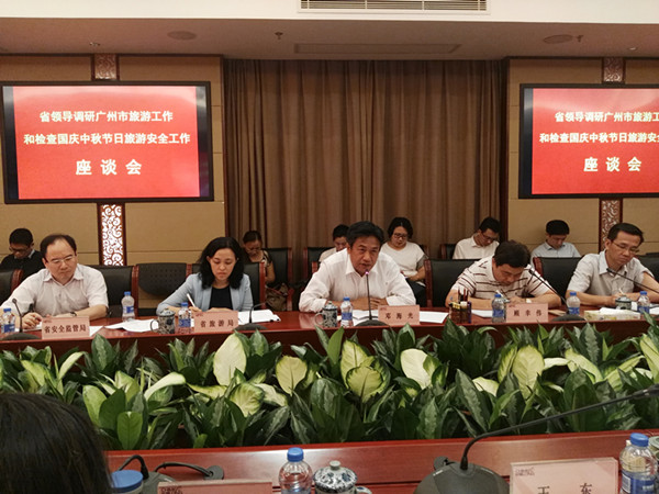 邓海光指出,今年国庆中秋双节有8天长假,各地回乡团聚、探亲访友、外出旅游的群众将大幅飙升,人流、物流、车流高度集中,道路交通、旅游景区、住宿餐饮等涉旅行业安全压力进一步增大。他要求,各级政府、各有关部门和旅游企业要始终牢记“安全第一,生命至上”的发展理念,高度重视假日旅游安全工作,进一步强化责任落实、监管检查和应急管理,切实把安全保障工作抓紧抓实抓好,以安全有序、欢乐祥和的环境迎接党的十九大胜利召开。一要厘清职责,强化责任落实。要依法依规、认真落实刚颁布的《广东省旅游条例》,严格按照“党政同责、一岗双责、失职追责”和“三个必须”的原则履行好旅游安全责任。要督促指导涉旅企业落实主体责任,完善安全管理制度。二要强化旅游安全检查,切实抓好安全隐患排查和整改措施落实。要加强对风景名胜区、地质公园、水库、森林公园、自然保护区、湿地公园、海洋公园等相关领域的安全检查,要防止户外运动爱好者擅自进入未经开发的危险区域。要督促涉旅企业开展安全生产自查自纠,切实落实对景区特种游乐设施维护、地质灾害预防等领域的检查,及时排查安全隐患。对安全检查中发现的问题,要及时整改排除。三要强化应急管理,提高旅游应急救援能力。严格执行领导在岗带班和关键岗位24小时值班制度,认真做好应急救援和处置准备工作。