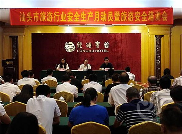 为认真落实好汕头市旅游行业领域2018年“安全生产月”和“安全生产万里行”活动,为汕头市创建全国文明城市和全国质量强市示范城市营造稳定的旅游安全环境,日前,汕头市旅游局在龙湖宾馆三楼会议中心召开全市旅游旅游行业2018年“安全生产月”和“安全生产万里行”活动动员暨旅游安全知识培训会。市旅游局党组成员、副调研员纪俊杰同志出席会议,各区(县)旅游局分管领导,全市旅行社、星级旅游饭店、A级旅游景区等单位负责人参加了会议。