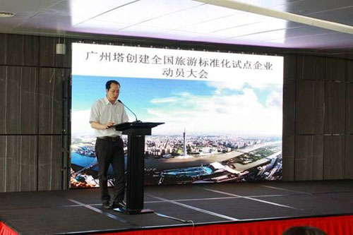 2015年5月14日,广州塔召开创建全国旅游标准化试点《企业标准手册》编制动员大会暨全员培训大会,广东省标准化研究院主任陈思嘉、工程师何英蕾,广州塔董事长陈强,广州塔领导班子、各部门负责人和编制人员等90余人参加了会议。