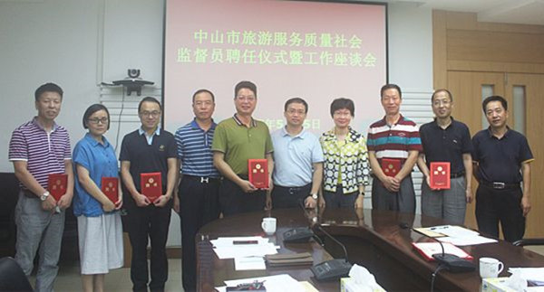 提升旅游服务质量,完善全社会共同参与的旅游服务质量监督机制,5月25日上午,中山市旅游局组织召开了全市旅游服务质量社会监督员聘任暨工作座谈会。市旅游局何杰斌局长、邓淑玲副局长、侯琳琳副调研员及行业管理科工作人员、10名受聘的旅游服务质量社会监督员参加会议。