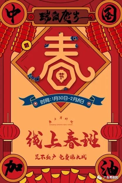 感谢广大观众对广东粤剧院“线上春班”的支持,疫情当前,我们坚信万众一心,齐心合力,一定能战胜疫情。应观众要求,我们的“线上春班”将一直延长到元宵节,为大家在“抗疫”的同时,送上丰富多彩的精神粮食。